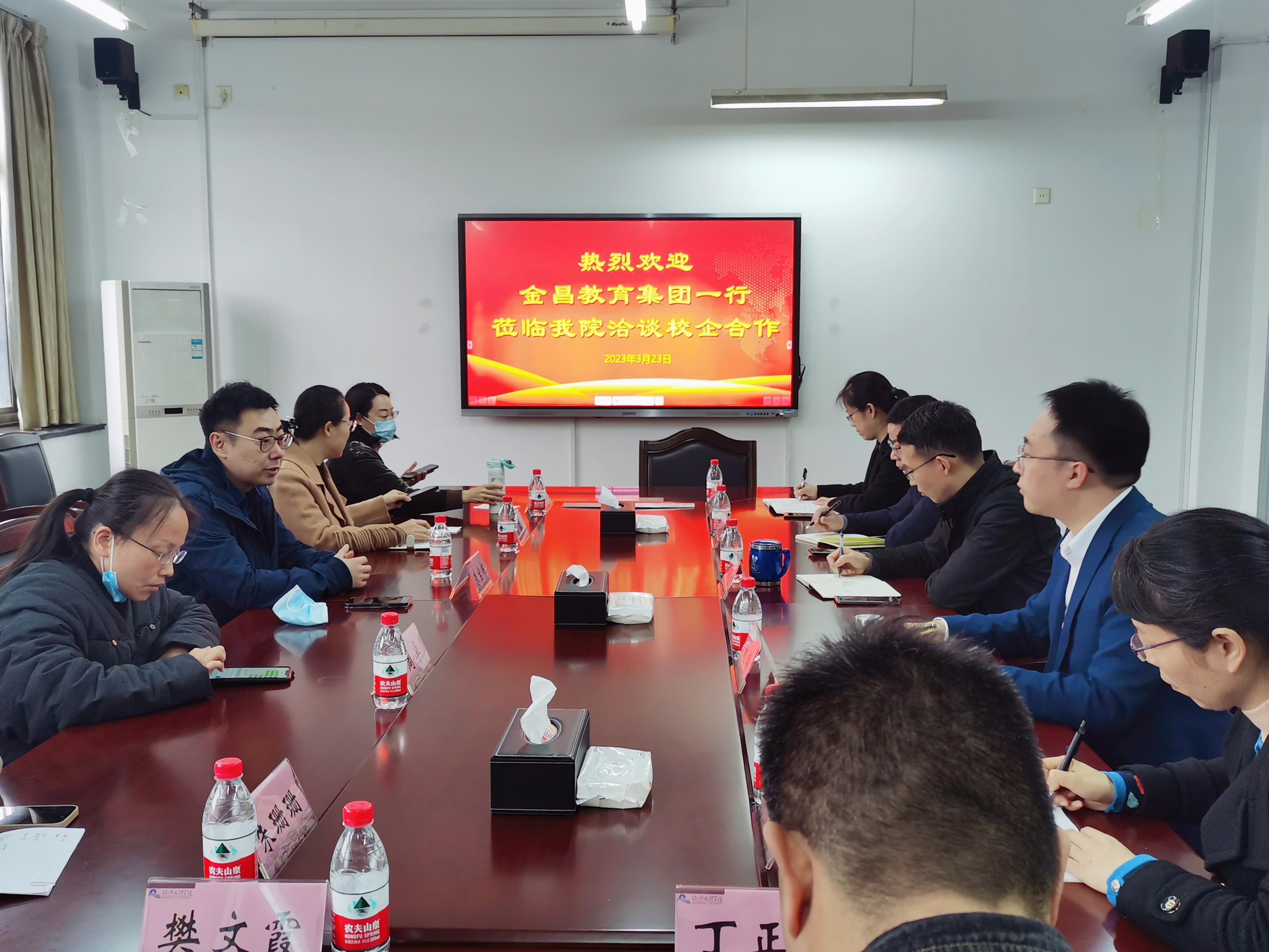 3月23日,金昌集团副总裁朱宝书,金昌教育集团总经理黄英,金昌集团教研副总经理周卓,金昌集团“潘栋民”基金会公益办书记裘若兰及人力资源经理等相关负责人来校洽谈校企合作。学校地方服务与合作处副处长、校友总会办公室副主任姚博,外国语学院领导班子及教师教育学院副书记、学生科负责人出席会议。