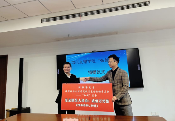 “弘越基金”系校友匿名捐赠,并委托陈相华先生到校履行捐赠手续,捐赠金额总计200万元整,每年实赠20万元。沈赤对陈相华先生的到来表示欢迎,对校友情系母校、关心支持学校发展的善举表示感谢和敬意。他代表学校接受捐赠,并颁发捐赠证书。他表示,校友是学校的宝贵财富,校友们的优秀事迹和成功经验是激励在校学子成长成才的典范,校友们的捐赠不仅是物质上的表达,更是精神上的滋养和情感上的激励。希望外国语学院充分、有效地管理好、使用好捐赠基金,做好学科建设、人才培养等工作,注重提升学术效果,助推学院内涵发展建设。