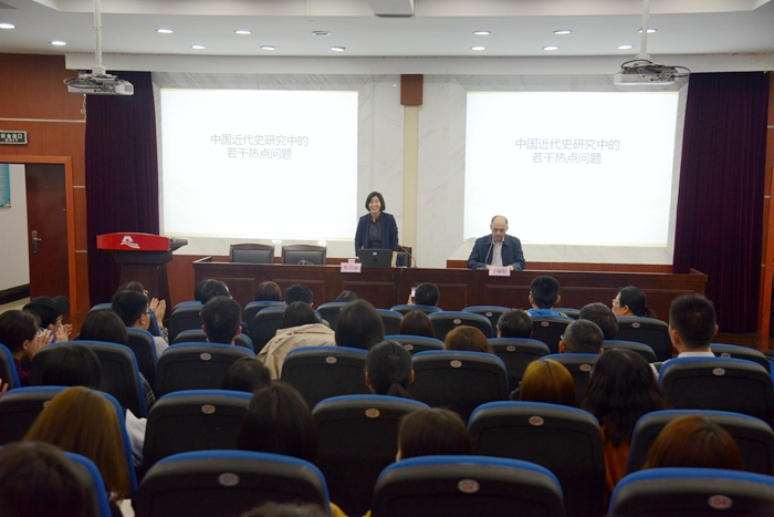 徐秀丽重点从抗日战争研究、中共党史研究、蒋介石研究、法律史研究、物质文明和技术进步五个方面入手,与师生分享了近代史研究中的若干热点问题。在谈到中共党史研究时她认为,历史是一个棋局而不是单线条,要将近代史和党史放在一起研究,注重过程建设和研究内部的复杂性。