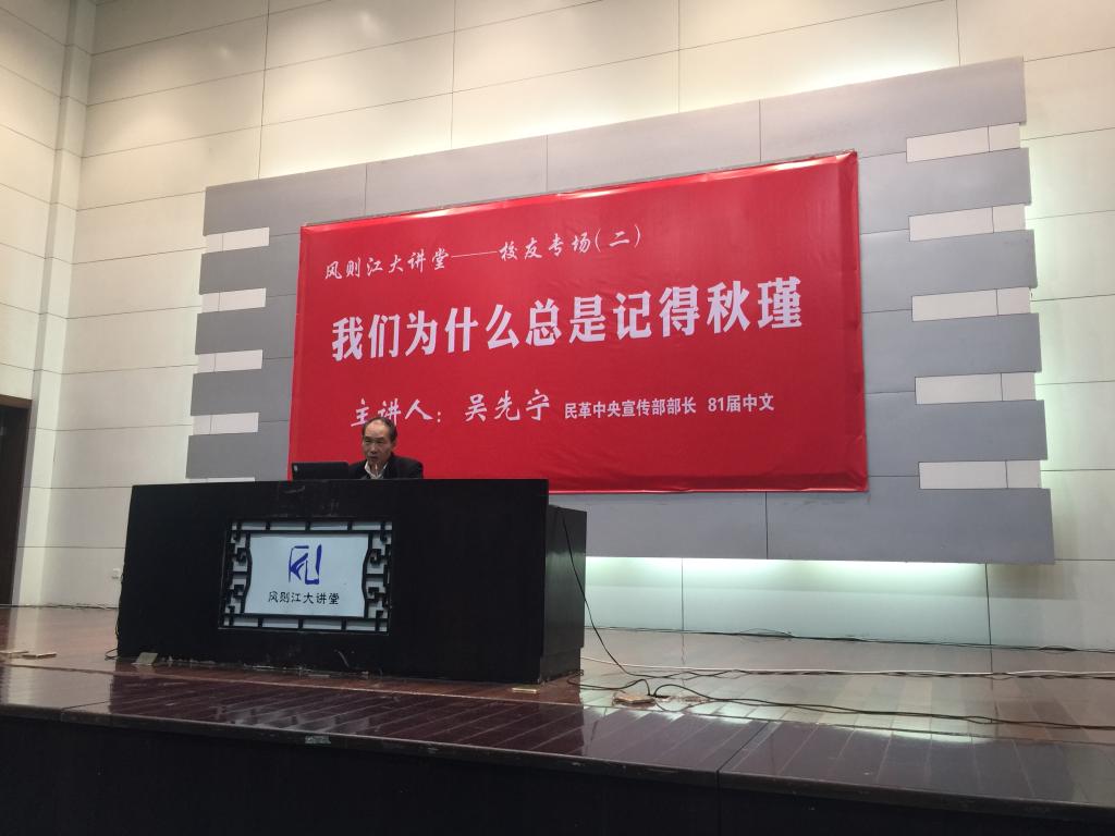 吴先宁校友围绕三大原因详细地分析了我们总是记起秋瑾的原因。吴先宁校友表示,我们之所以总是记起秋瑾,是因为秋瑾优美、凄美、壮美的短暂一生,其独特的革命观及其身为近代最为杰出的抒情诗人。吴先宁校友讲述了秋瑾优雅的日常生活,从“流光如水颜难驻,绮梦如尘忆未真”的失魂落魄的闺阁怨妇发展到“一腔热血勤珍重,洒去犹能化碧涛”的巾帼不让须眉的女侠客,让在场观众体会到了秋瑾一生的凄美和壮美。
