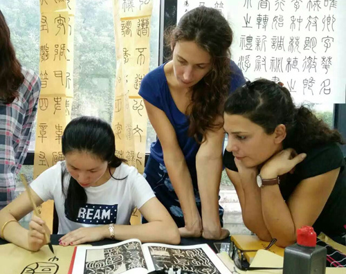 据悉,除了这种学分制的书法研习外,短期的、2至3周的交流也不少。如从2003年开始,瑞士日内瓦大学每年派书法研习团来我校研习书法,部分学员至今已来过7、8次。今年4月4日,又有一批13人团抵达我校。