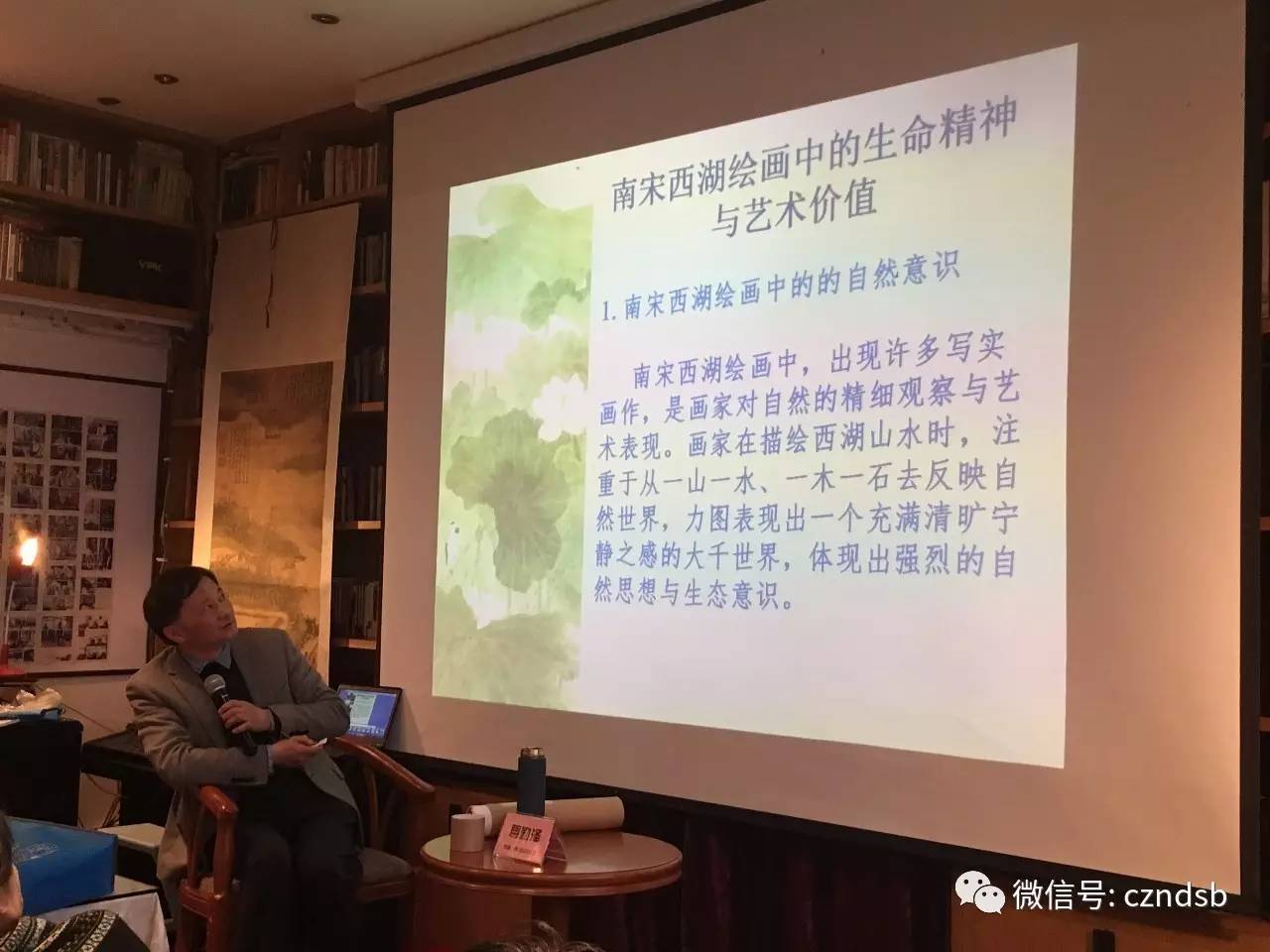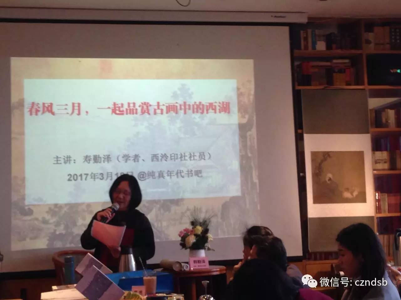 书吧女主人朱锦绣老师致辞欢迎大家:我们何等有幸,西湖在窗外;我们何等有幸,今天邀请到学者寿勤泽老师,引领大家赏读中国古画中的西湖图,在中国古画的精品长廊中,做一次轻松愉快的游览。让我们在俯瞰西湖美景的宝石山腰文化客厅,跟随寿老师的讲述,慢下来,一起感悟西湖千年来的山林之美,探索生命之思。