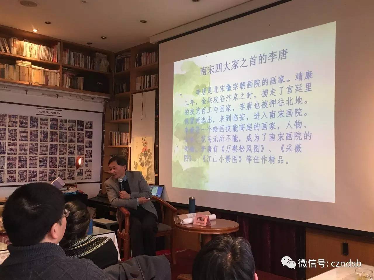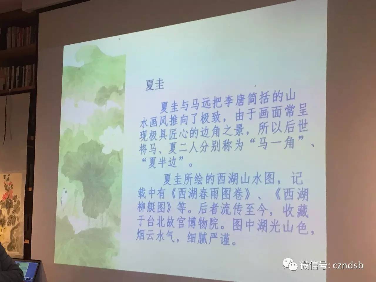 寿老师谦逊儒雅,每字每句都是大学者的虚怀若谷,他将多年来致力于中国古代绘画史研究和古画观赏的心得,浓缩在了这一个下午的分享中。为了让大家近距离感受宋画的魅力,寿勤泽老师不仅以PPT为大家展示了宋代著名的山水、花鸟、人物等画作,还特意带来了他自己珍藏的复制版名画。书吧现场座无虚席,寿勤泽老师的演讲语言高妙优美,带给我们一场穿越千年的赏览,溯源西湖千年的风雅史,感悟民族优秀的传统文化,令书吧的书友们一饱眼福和耳福。我们记录了寿老师的一些讲座片段,与大家分享。