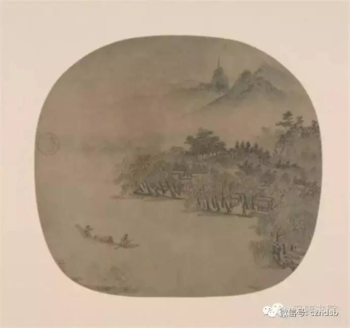 (西湖春晓图:宋代佚名的团扇小品画,传流千年的画作,描绘西湖风光,细腻逼真。)