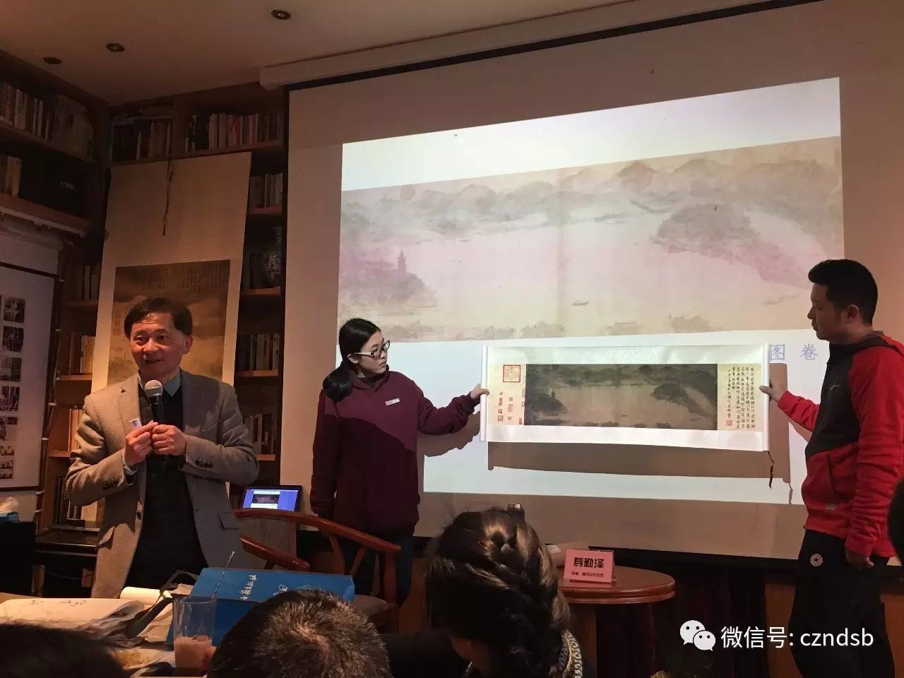 (寿老师为大家讲解他珍藏的《西湖图》)