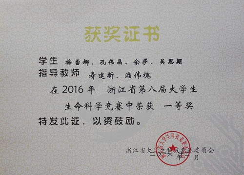 科学教育专业学生参加浙江省大学生生命科学竞赛荣获一等奖