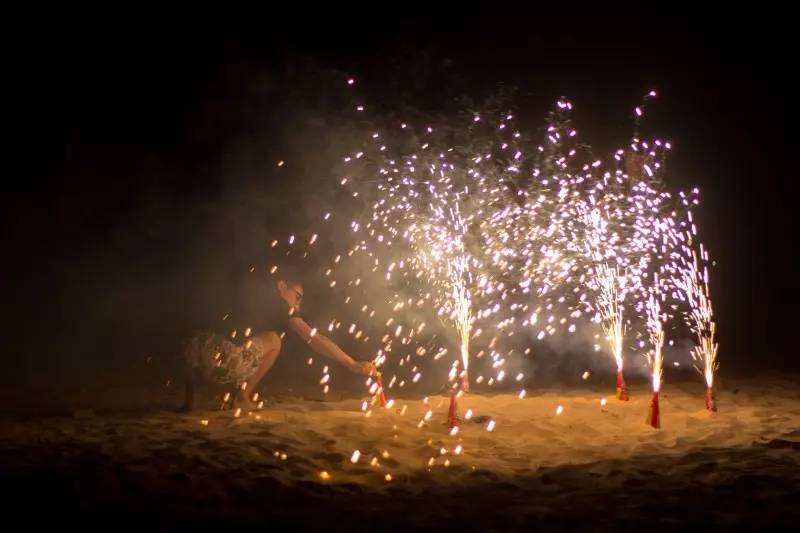 夜晚的沙滩,做烧烤、放烟花、放孔明灯,又是另一派风光。