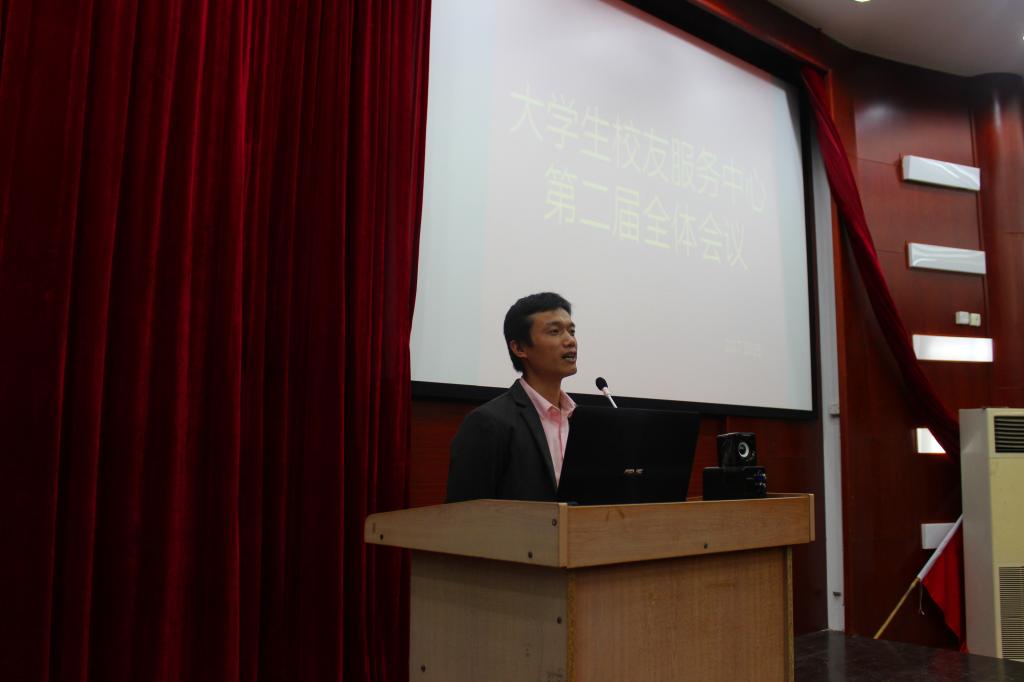 会议伊始,钱老师介绍了大学生校友服务中心的成长历程和主要领导,真切地表达了对校友服务中心未来的期望。他在充分肯定各部门工作的同时,也分析了各部门存在的问题并对其以后的工作做出要求。结合自身的学习成长经历,他提出学生要重视第三课堂的学习,希望成员们能够在校友服务中心这个平台锻炼自己发挥自己的特长,在以后的工作中能够有所作为。