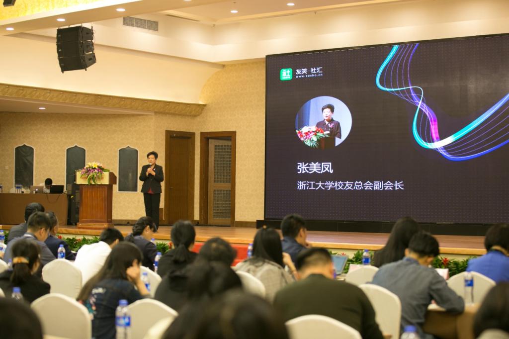 作为校友工作的先驱者与见证人,浙江大学校友总会副会长张美凤女士出席并祝开幕词。她首先对校友会和基金会近二三十年的发展表达了赞赏与肯定。她说到:今天的论坛由一个企业来主持,说明高校校友会和基金会的发展形势喜人,社会各界关注校友会和基金会的发展。张老师从事校友会工作几十余载,经验丰富,从她的致辞中可以看到,今天的世界经济形势大变化,对我们的工作提出了更高的要求:我们要提倡一个“校友生态圈”,建设校友和母校的“发展共同体”,这是更高的目标和要求。而人工智能与大数据,则是实现这一愿景的利器。