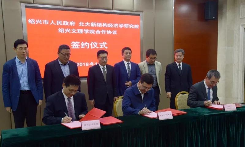 10月29日,在2018绍兴“名士之乡”人才峰会上,绍兴市人民政府、北京大学新结构经济学院和我校正式签订三方合作协议,共建新结构经济学长三角(绍兴)研究中心。