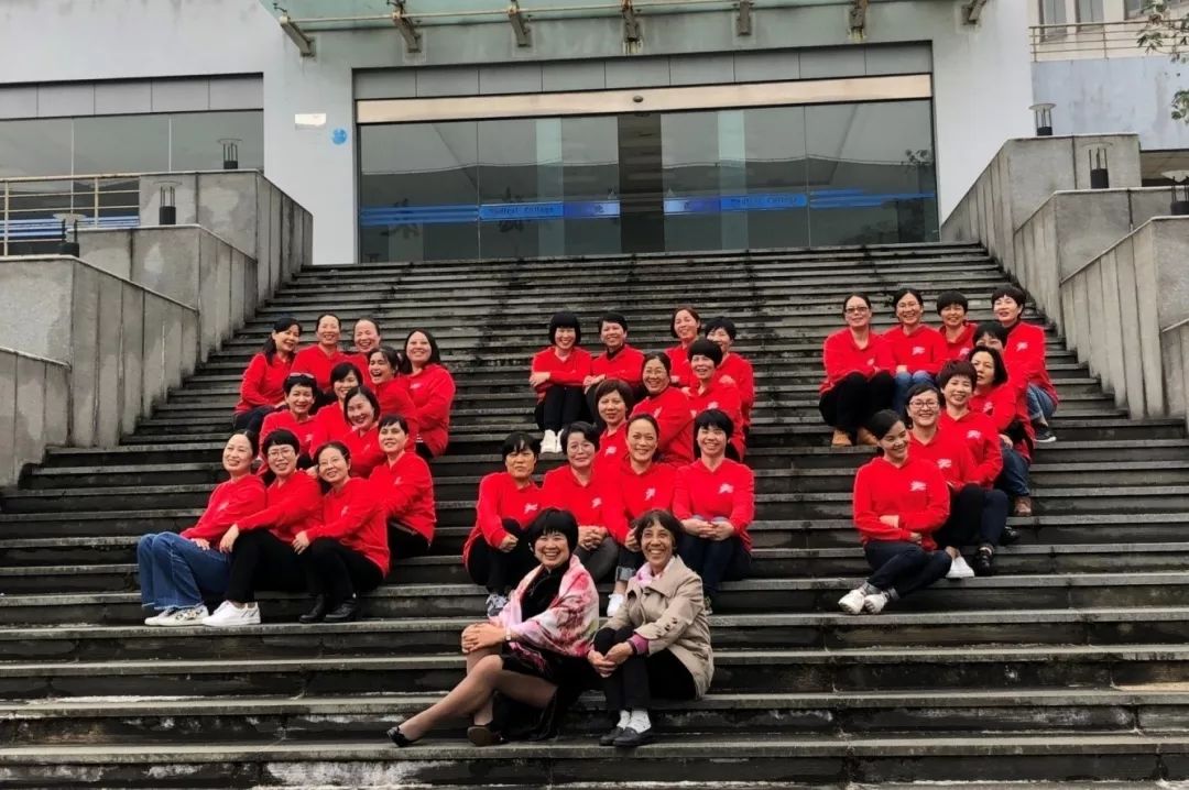 同学会的第一个行程是欢聚天台温泉山庄,游览国清寺、琼台仙谷景区。同学们同吃同住,结伴漫步山水之中;聊天,怀旧,忆往昔,畅人生;享受久别重逢的那份喜悦,那份宁静和满足;在这一方净土美景中,放松自己。看那鲜艳耀眼的红卫服,祭奠着我们火红的青春,也为初冬略显萧条的山水风光增添了一抹亮丽的风景线,大家欢声笑语,唱歌,爬山,拍照,戏闹,就像当初的青春少女,每个人都激动无比、开心快乐!早已忘了自己已步知命年轮。