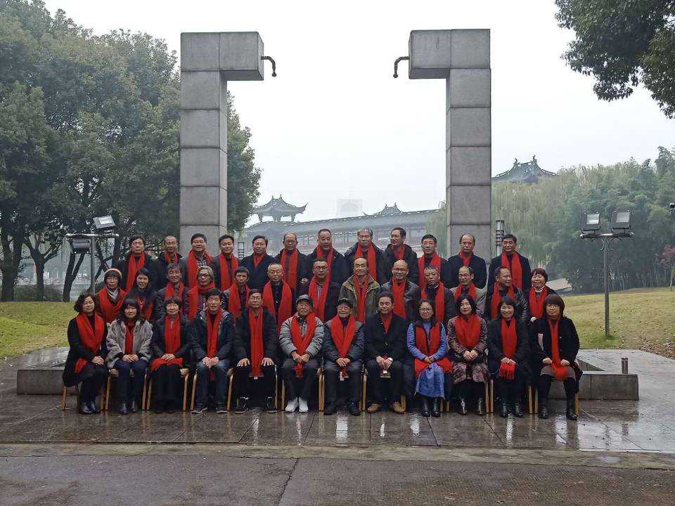 2018年12月15日,绍兴师专物理85级毕业三十周年同学会在铁城科教馆举行。同学们陆续到达,围着统一的红围巾,三五个聚在一起寒暄、合影,现场充满着欢乐的氛围。在《同桌的你》的背景音乐中,同学们一边欣赏书桌上的书法作品,一边讨论接下来的行程,有人提议为不断壮大的同学会队伍继续拍摄各种各样的照片。