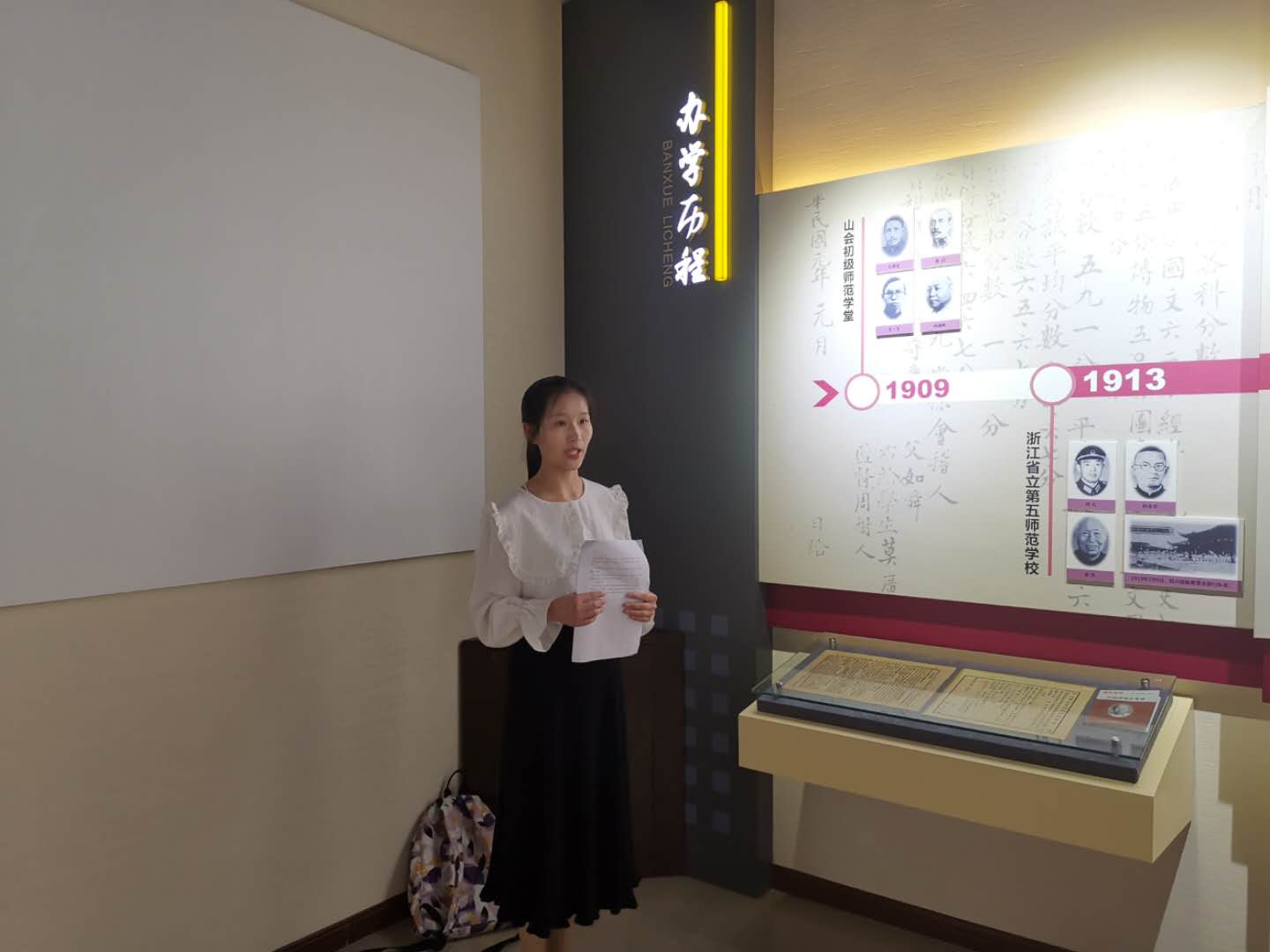 4月10日,新任校史馆讲解员在校史馆进行模拟讲解训练。据悉,这是讲解员任命以来第三次集中培训,本次讲解员培训工作由夏婷、陈瑾、钱小波担任指导老师,分别对同学们进行普通话、礼仪以及现场表现等方面专题培训。经过培训,讲解员们的能力和水平都有显著提升,已初步具备合格讲解员应掌握的技巧和品质,期待在日后的实践中讲解员们都能大放光彩。