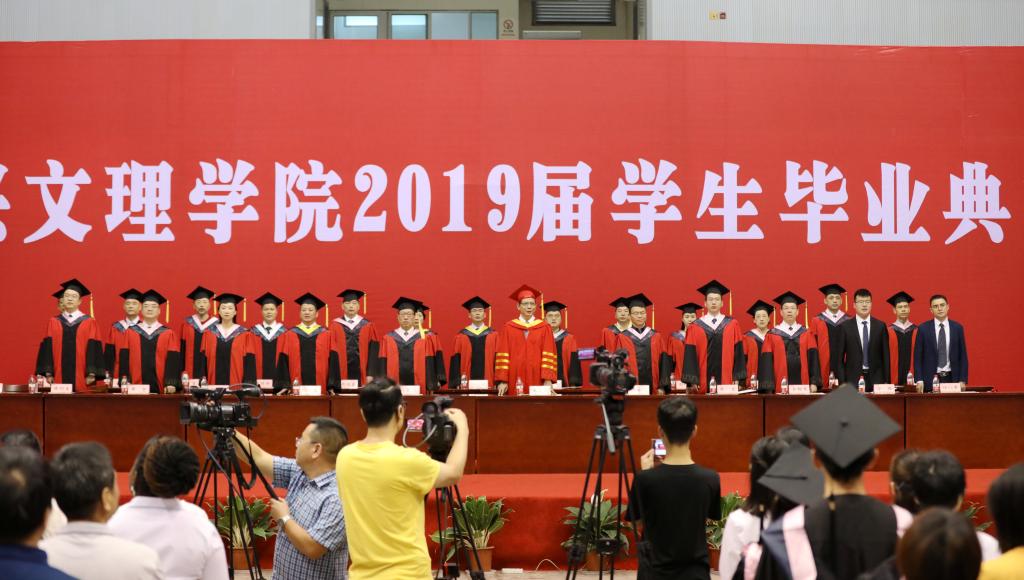 王建力在致辞中回忆了与2019届毕业生们朝夕相伴的每个瞬间。“让我欣慰的是,你们在大学阶段赢得了一份收获满满的‘成绩单’。”王建力介绍了2019届毕业考取国内研究生、出国(境)留学的情况。“学校也很拼,一路高歌猛进,跑出了建设发展的‘文理加速度’。”王建力悉数近年来学校发展的成果,勉励师生共同努力,期待文理学院的明天越来越好。