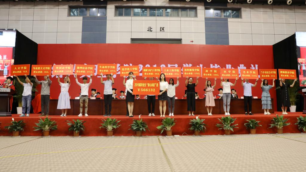 作为毕业生离开母校时爱校教育的一项传统活动,“爱心承诺”在文理已经接力了23年,2019届毕业生中有1602人作出了“爱心承诺”,承诺总金额达到566132元。在校生代表代表学校受赠。
