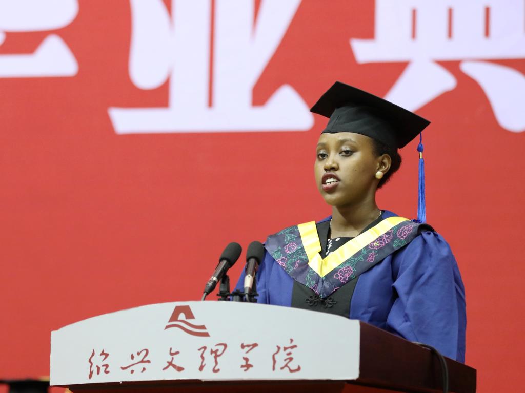 来自卢旺达的索兰芝代表留学毕业研究生发言。她追忆了在文理的学习生活,感激文理老师和同学们的帮助,表示在文理的时光将终身难忘,并祝愿大家前程似锦。