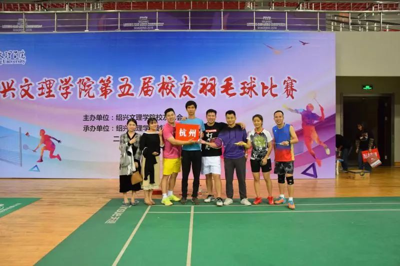 来自杭州、越城、柯桥、上虞、诸暨、新昌、纺织服装学院、元培学院友代表队和文理学院羽毛球协会共9支队伍,一百余名校友参加了比赛。