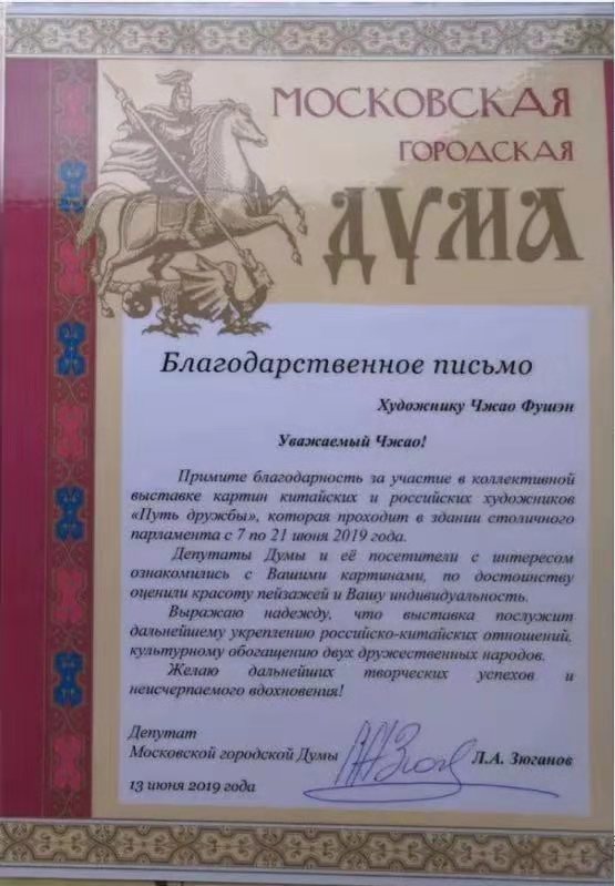 "庆祝新中国成立70周年暨中俄建交70周年庆典"——中俄艺术家作品联展近日在莫斯科杜马办公大楼展览大厅隆重开展。莫斯科杜马,俄罗斯亚洲艺术基金会,俄中友好协会,中国驻俄大使馆等有关机构负责人及活动组委会成员出席开幕仪式并先后致辞表示祝贺!