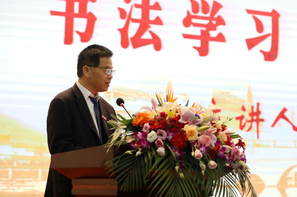 10月27日上午,中国书法家协会理事、行书委员会副主任,浙江省文学艺术界联合会副主席、书记处书记,浙江省书法家协会副主席,我校85届校友赵雁君做客风则江大讲堂,作题为《关于书法学习的基本路径》的学术讲座。校领导班子成员和师生代表现场聆听讲座。副校长寿永明主持讲座。赵雁君从书法创作的观念和方法、书法创作参照系、临摹与创作的关系、技法解析与创作意识的培养等四个方面分享了关于书法学习的基本路径。