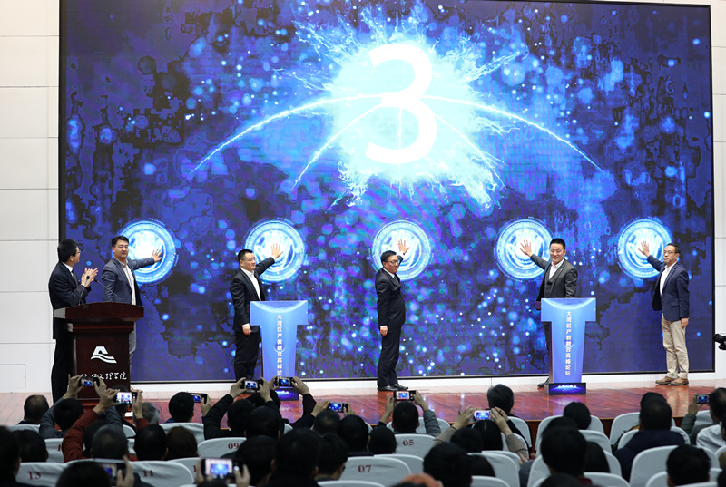 陈德洪、韩家英、刘宏、汪俊昌、岳喜伟共同启动绍兴文理学院•百度云人工智能学院。