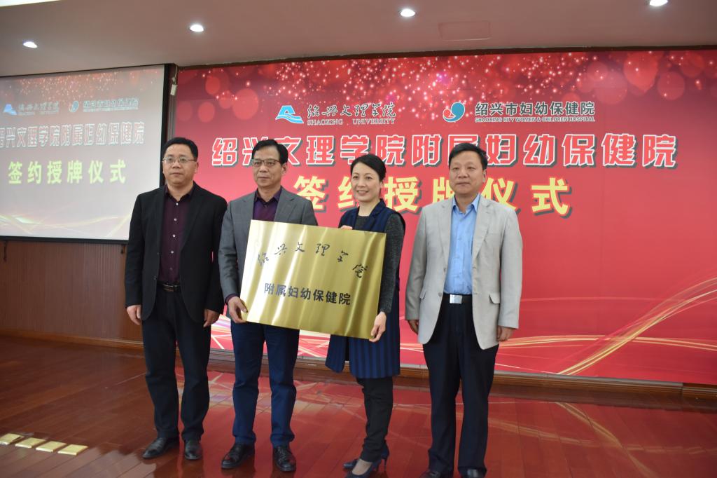 柳国庆和绍兴市妇幼保健院院长袁敏分别代表学校和医院签订《绍兴文理学院与绍兴市妇幼保健院关于挂牌绍兴文理学院附属妇幼保健院协议书》。