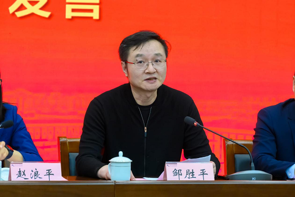 纺织服装学院院长邹专勇介绍雅诗澜奖学金设立的情况,并汇报了近年来学院取得的成绩。