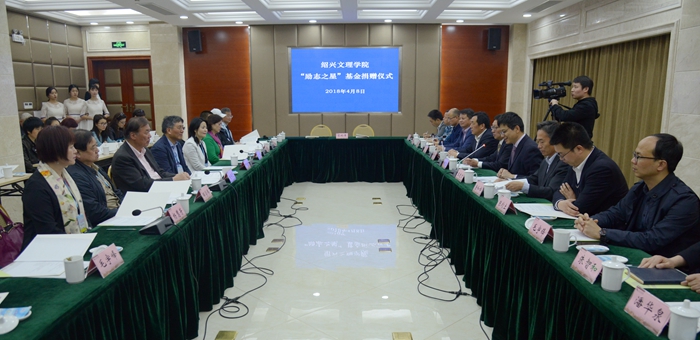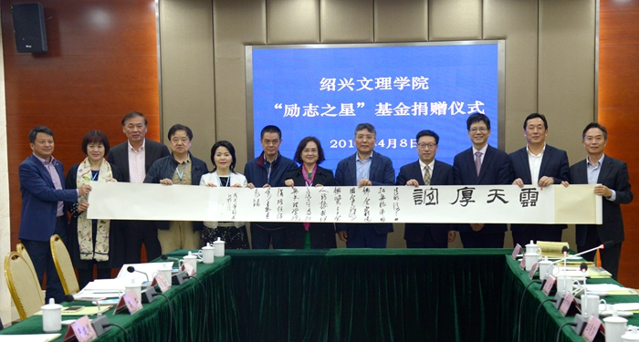 四月的校园,春意盎然。4月8日下午,由绍兴旅港同乡会出资设立的“励志之星”教育基金在我校铁城科教馆一楼会议室举行捐赠仪式。绍兴旅港同乡会会长严建国,绍兴旅港同乡会常务副会长高红、倪伟虎、任惠芬、邹学伟、卢正良、杨慧芳等乡贤,绍兴市委统战部常务副部长黄文刚出席捐赠仪式。校领导汪俊昌、王建力、唐和祥、沈赤以及相关部门负责人参加仪式。仪式由校党委副书记沈赤主持。