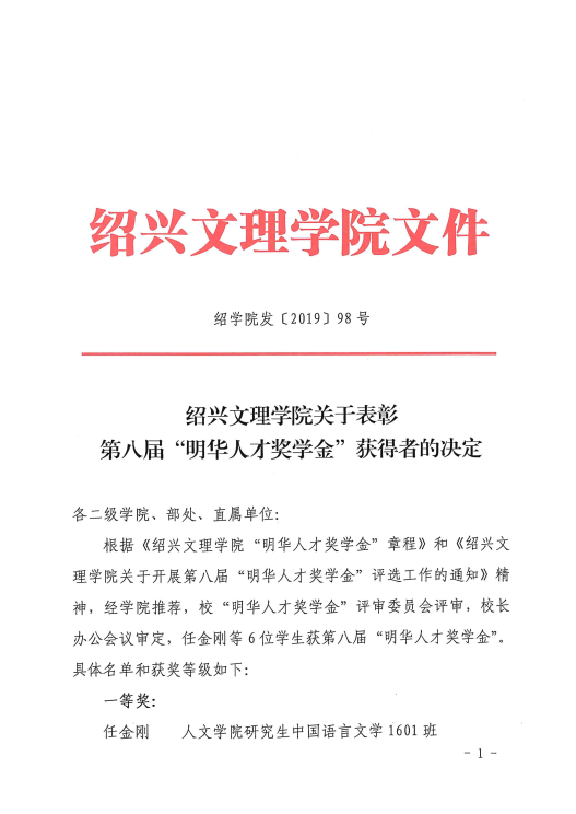 绍兴文理学院关于表彰第八届明华人才奖学金获得者的决定