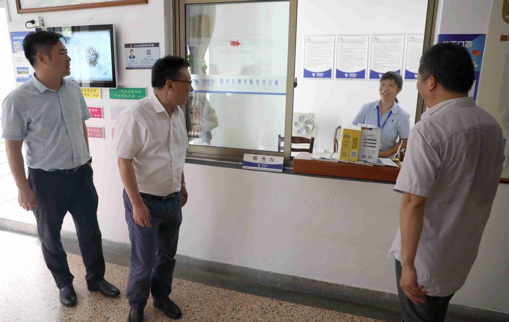 汪俊昌一行先后走访看招生办、河西餐厅、医务室、改扩建办、南山门卫室、南山学生公寓等工作岗位。每到一处,汪俊昌都与在岗教职工亲切交流,详细询问工作、生活、身体等情况,嘱咐大家在做好工作的同时,时刻绷紧疫情防控这根弦,注意防暑降温,并代表学校对大家的辛勤付出表示由衷的感谢。