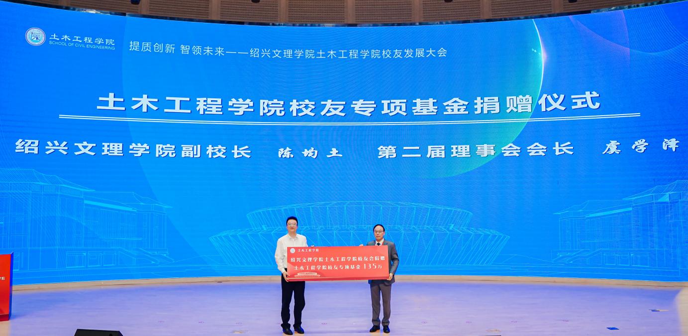 由长业建设集团等6家校友企业首批注资135万元的土木工程学院校友专项基金正式设立,该基金专项用于土木工程学院建设发展。虞学泽代表校友会向学校教育基金会捐赠,陈均土代表学校接受捐赠。