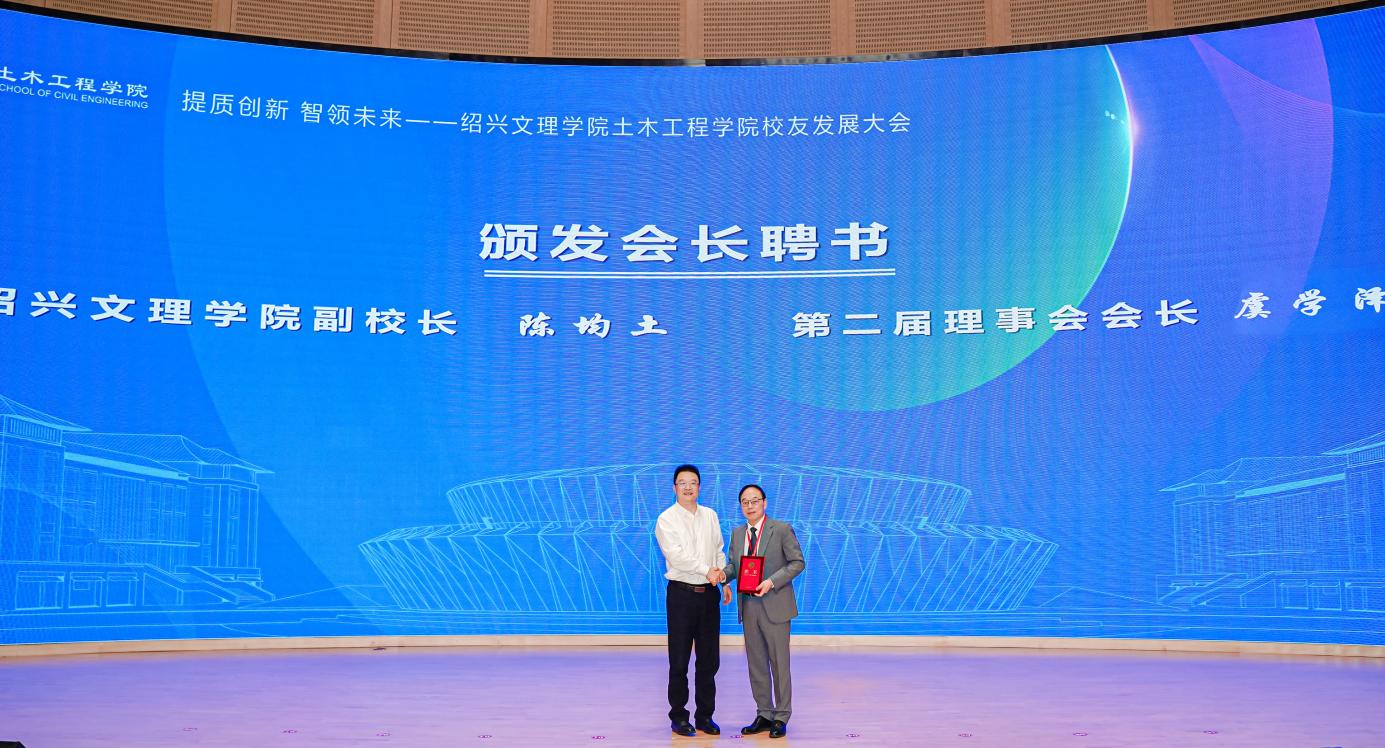 会上,土木工程学院校友会选举产生了第二届理事会领导班子。陈均土为第二届理事会会长虞学泽颁发聘书。