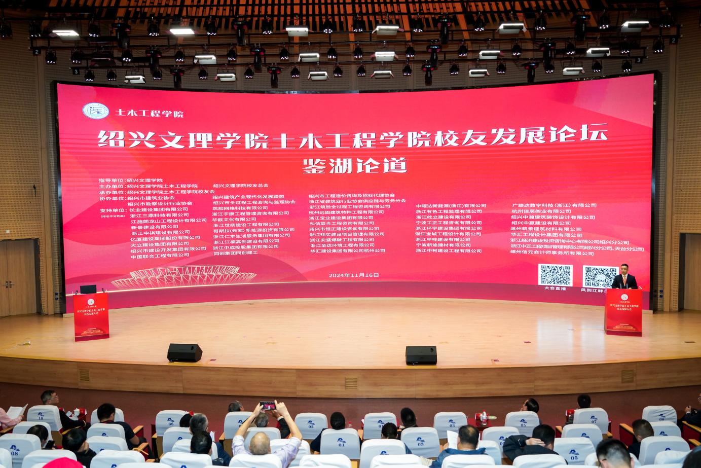 提质创新,智领未来。11月16日,土木工程学院校友发展大会在风则江大讲堂举行。校党委书记崔凤军,副校长陈均土、胡云进,校党委委员黄曼,土木工程学院领导班子成员,浙江省建筑业协会、绍兴市建筑业协会、绍兴建筑产业现代化发展联盟、绍兴市工程造价咨询及招标代理协会、绍兴市勘察设计行业协会、绍兴市全过程工程咨询与监理协会等行业协会领导、专家等出席活动。