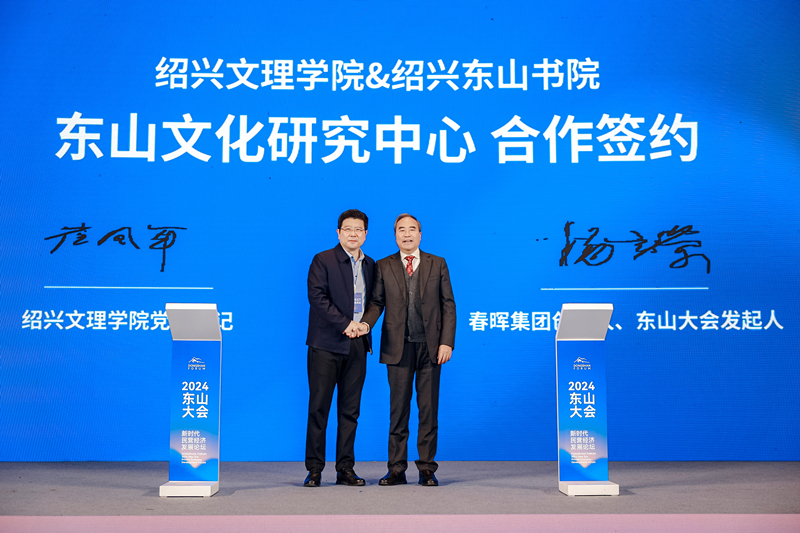 12月12日上午,校党委书记崔凤军赴上虞出席“东山大会——2024 新时代民营经济发展论坛”,代表学校与春晖集团创始人、东山大会发起人杨言荣签订合作协议,共建东山文化研究中心。