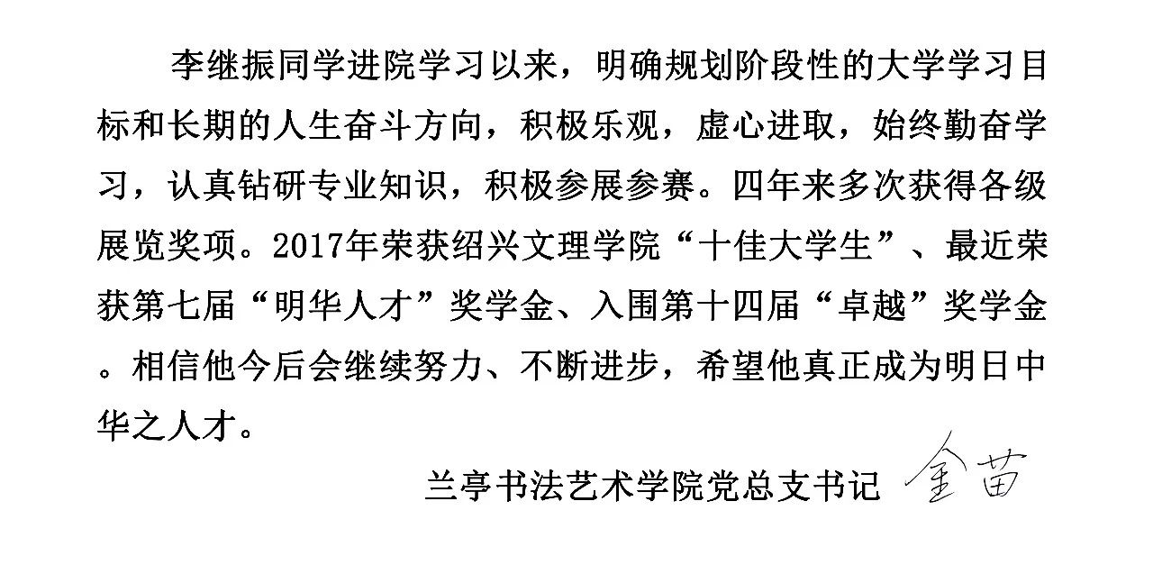 兰亭书法艺术学院2017学年优秀学生奖学金