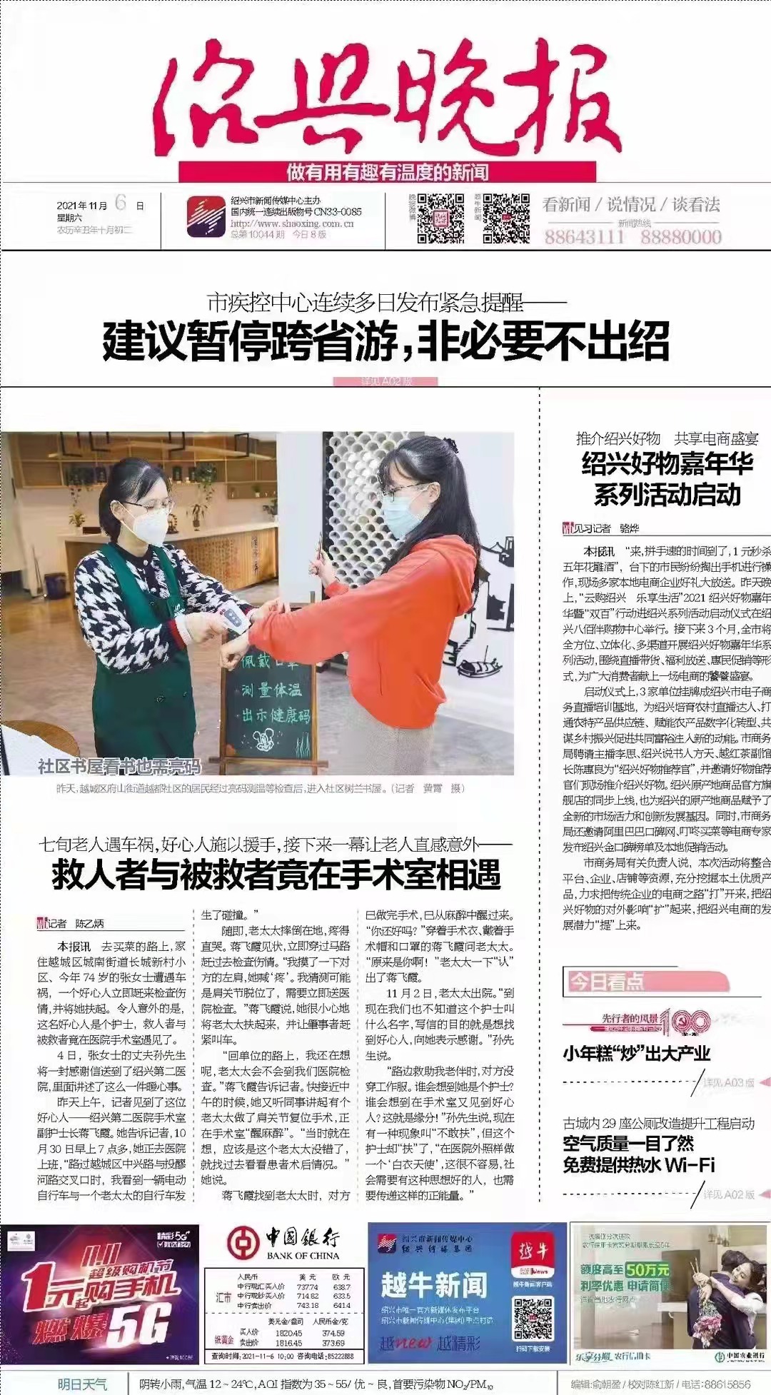 绍兴晚报头版报道的《救人者与被救者竟在手术室相遇》,救人者为我校医学院护理457班2002届毕业生,现为附属第二医院手术室副护士长蒋飞霞,去年曾获医院“十佳院工”称号,现将全文转载如下: