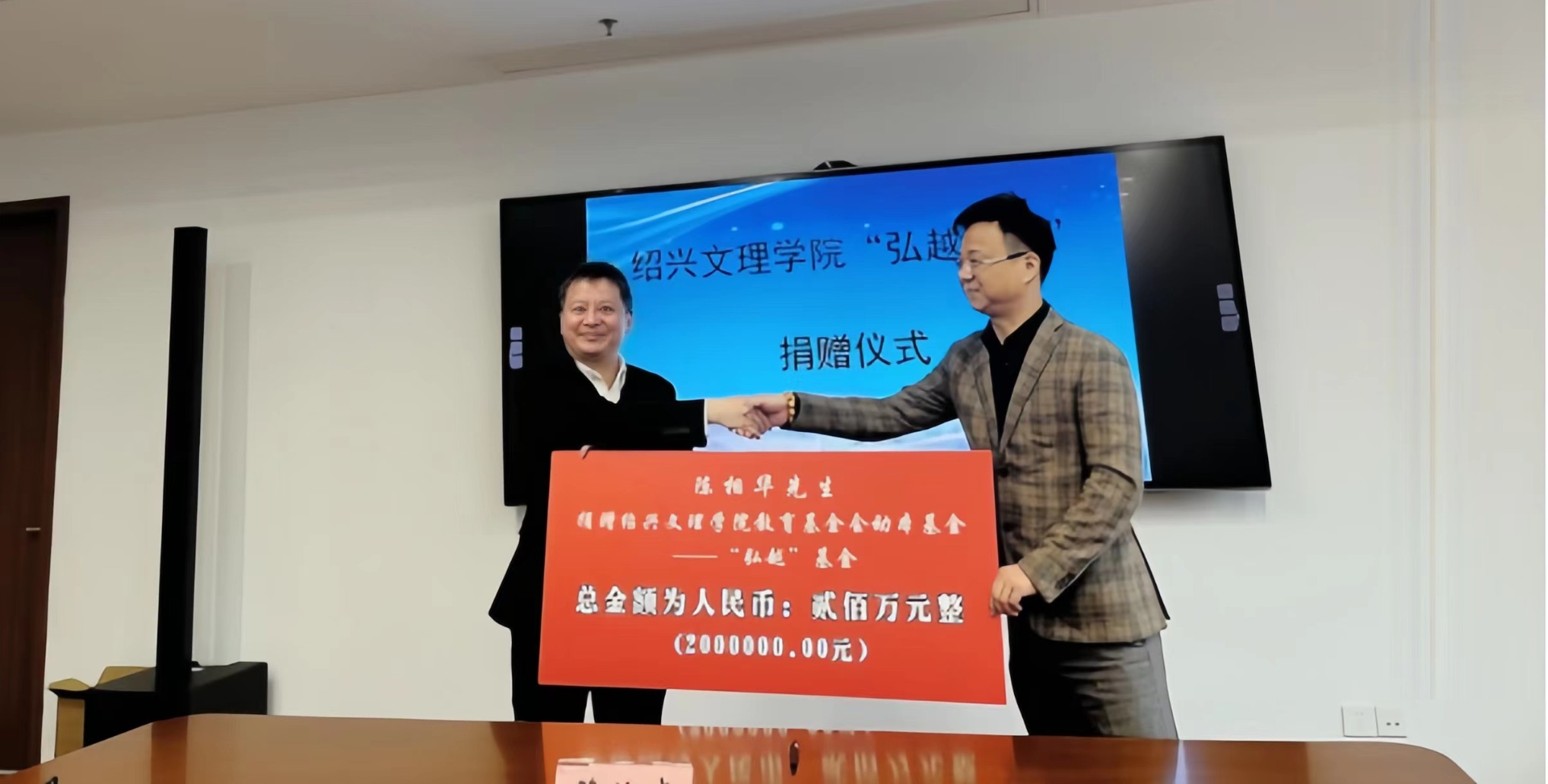 4月4日,我校“弘越基金”捐赠仪式在行政楼318会议室举行。捐赠代表陈相华先生,校党委副书记沈赤,地方服务与合作处(校友办、教育基金会)、外国语学院主要负责人及相关教师代表参加捐赠仪式,仪式由外国语学院党委副书记金灵主持。“弘越基金”系校友匿名捐赠,并委托陈相华先生到校履行捐赠手续,捐赠金额总计200万元整,每年实赠20万元。沈赤对陈相华先生的到来表示欢迎,对校友情系母校、关心支持学校发展的善举表示感谢和敬意。他代表学校接受捐赠,并颁发捐赠证书。他表示,校友是学校的宝贵财富,校友们的优秀事迹和成功经验是激