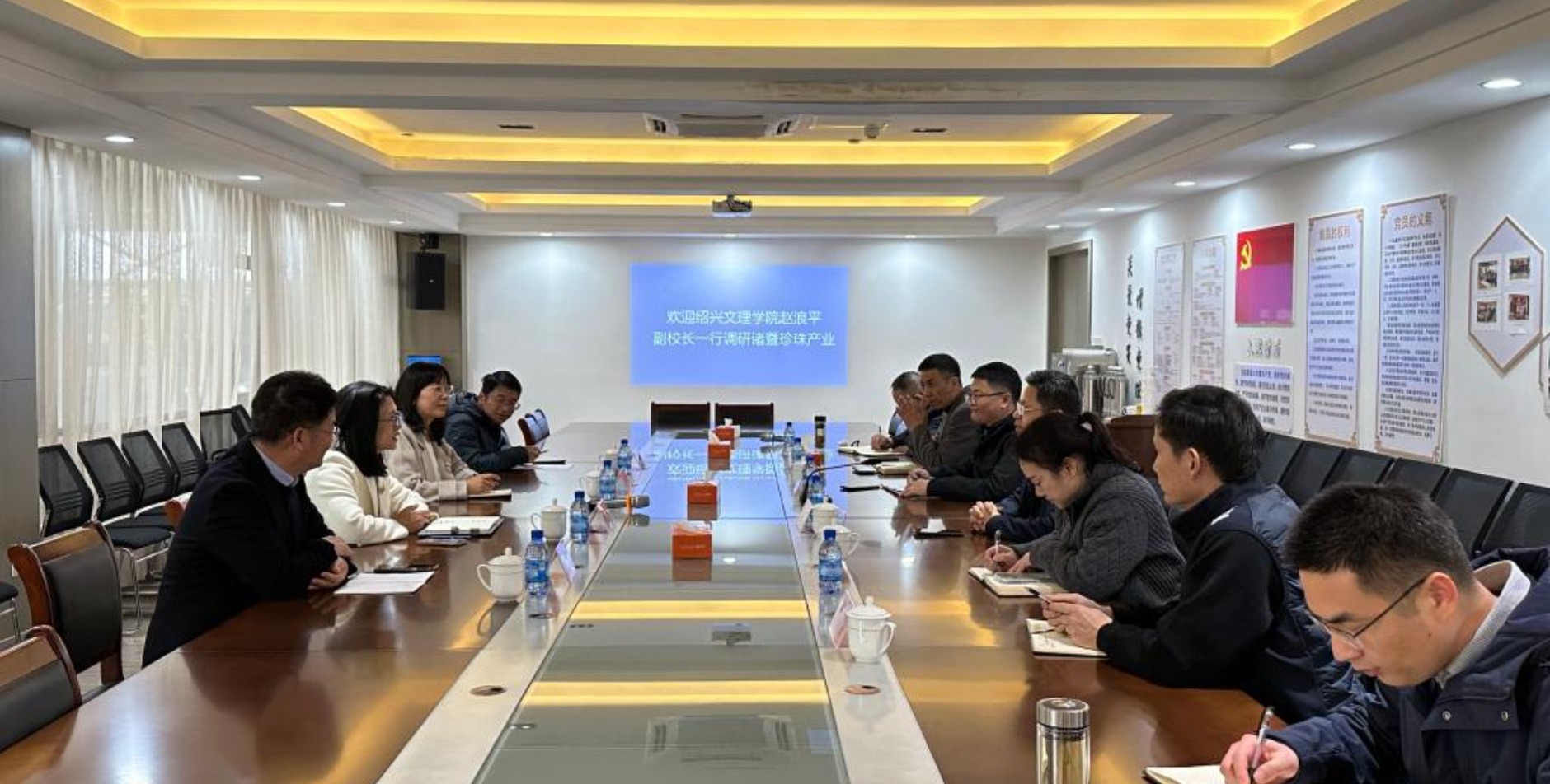 为深入贯彻落实学校第四次党代会关于校地共生发展战略部署,根据寒假工作部署会精神,1月20日下午,副校长赵浪平赴诸暨企业走访调研,深化校企合作项目,诸暨市副市长陈文进等陪同调研。学校人文社会科学处等职能部门和生命与环境科学学院、机械与电气工程学院相关负责人参加调研。 赵浪平一行先后来到浙江省珍珠行业协会、华东国际珠宝城走访调研并召开座谈会,陈文进和诸暨市科技局、山下湖镇、浙江省珍珠行业协会、浙江清湖控股集团有限公司负责人等陪同调研。我校生命与环境科学学院副院长任岗介绍了校企双方2024年合作内容与成果。双