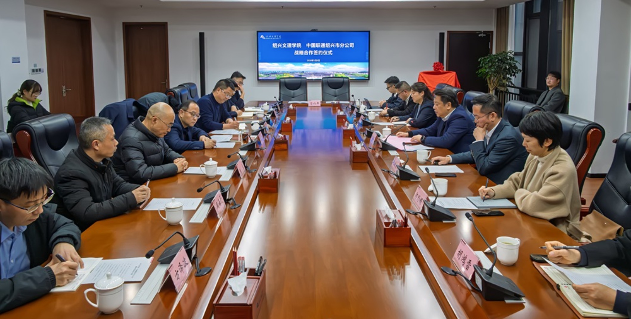 3月5日下午,绍兴文理学院与中国联通绍兴市分公司战略合作签约仪式在行政楼东318会议室举行。中国联通浙江省分公司党委书记、总经理童海波,中国联通绍兴市分公司党委书记、总经理赵结宗,校长赵阳、副校长陈均土出席会议。签约仪式由陈均土主持。 童海波表示,浙江联通始终心怀“国之大者”,主动赋能地方经济社会发展。下一步,浙江联通将发挥人工智能、大数据等方面的优势,以科技赋能教育,共同筹建设立一流技术平台,为绍兴乃至全省未来产业发展增添新动能、注入新活力。 赵阳对中国联通公司一直以来对我校建设发展的大力支持表示衷