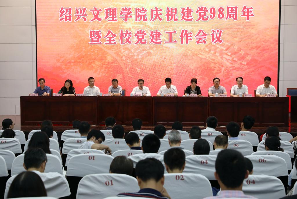 6月26日下午,庆祝建党98周年暨全校党建工作会议在铁城科教馆一楼报告厅隆重召开。学校党政领导班子成员、校纪委委员,全体科级及以上干部,二级党组织班子成员,二级纪检组织负责人,教工党支部书记,专(兼)