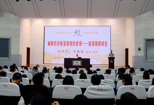 6月11日晚,浙江大学求是特聘教授、文科领军人才、公共管理学院博士生导师石敏俊教授做客风则江大讲堂,作题为《破解经济政策困境的密钥——政策模拟研究》的讲座。副校长张宏和400名师生代表现场聆听讲座。石