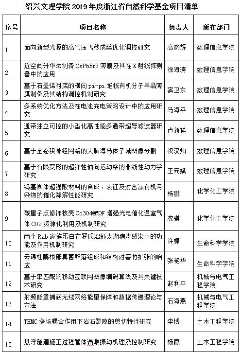 日前,浙江省自然科学基金委员会发文公布了2019年度浙江省自然科学基金项目,浙江省科学技术厅浙江省自然科学基金委员会发文公布了2019年度浙江省公益技术应用研究计划项目,我校共获准主持29项,其中数理