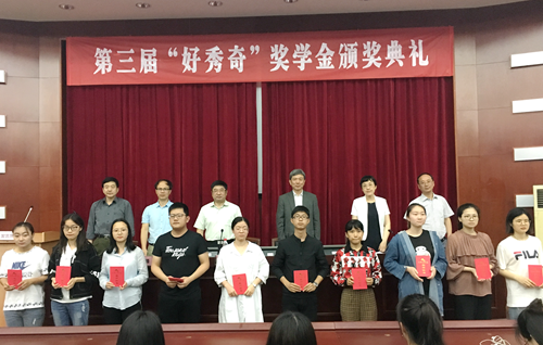 5月21日下午,第三届“好秀奇”奖学金颁奖典礼在南山7号楼1楼报告厅举行。校纪委书记邱卫东,秀奇实业(香港)有限公司执行董事、深圳好秀奇服饰有限公司董事长、广东校友会会长石国洪,对外联络处、学工部、外