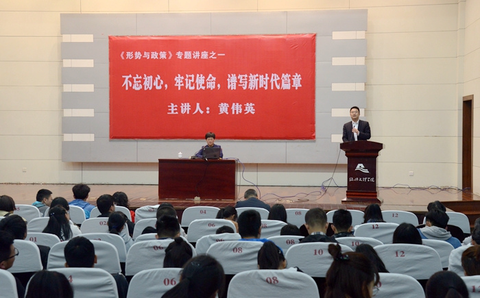 3月26日晚,我校首场《形势与政策》大课堂在铁城科教馆报告厅开讲。市委宣传部副部长、市社科联主席、我校师专政史90届校友黄伟英为现场450名同学作题为《不忘初心,牢记使命,谱写新时代篇章》的专题讲座。