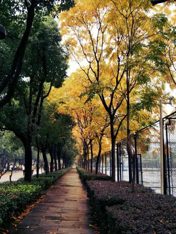 “白云飞,草木黄”,立冬过去已一月有余,可文理好像还徘徊在秋与冬的交集。多彩的秋,斑斓的秋,仍不肯褪去最后一丝热情,在文理与严寒的冬开始了拉锯战,抢夺地盘,可谓是寸土必争。 主干道上的林荫树,半黄半