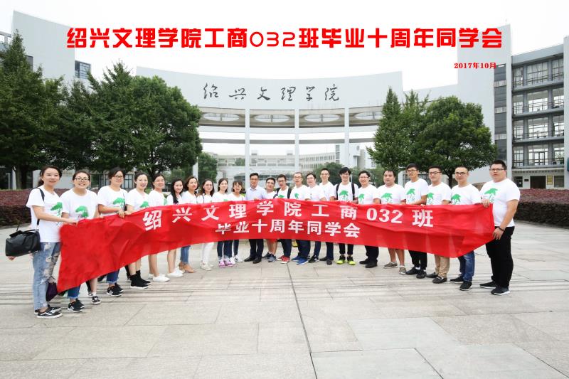 公元2017年10月2日,农历丁酉年八月十三,国庆假期。绍兴文理学院工商032班毕业十周年同学会在母校河西校区铁城会议室隆重举行。原班级辅导员,现信息管理学院副书记史正东老师与23名同学一同参加聚会。