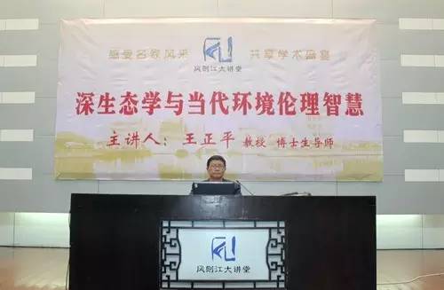 4月5日晚上,上海师范大学二级教授、博士生导师王正平教授做客风则江大讲堂,作题为《深生态学与当代环境伦理智慧》讲座。王正平教授从深生态学产生的背景——人类生态意识的觉醒谈起,他表示,深生态学是当代西方