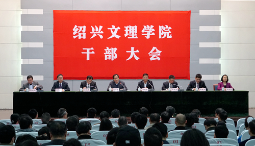 4月11日上午,学校在铁城科教馆一楼报告厅召开全校干部大会。省委组织部领导在会上宣布了中共浙江省委关于我校校长调整的决定,王建力同志任绍兴文理学院党委委员、党委副书记、校长,免去叶飞帆同志党委副书记、