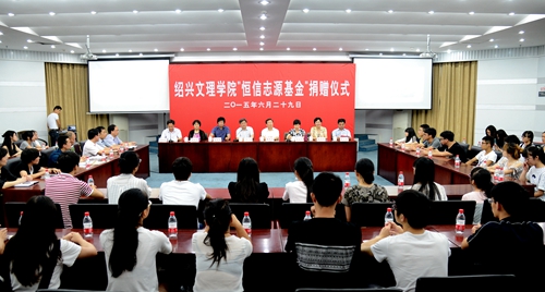 热心公益、支持家乡高等教育建设的绍兴乡贤、绍兴恒信投资有限公司董事长茹振刚,通过市红十字会,在我校设立了2000万元留本捐息基金“恒信志源基金”,每年捐出50万元利息(今年第一期捐资100万元),设立
