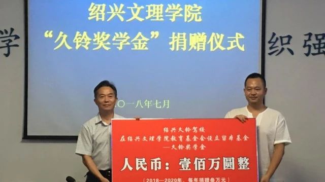 7月4日,绍兴文理学院久铃基金捐赠暨奖学金设立仪式在志廉楼324会议室举行。